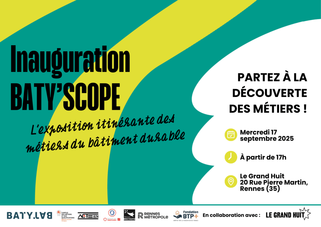 Rendez-vous le mercredi 17 septembre 2025 au Grand Huit à Rennes pour l’inauguration de cette exposition itinérante autour des métiers du bâtiment durable !