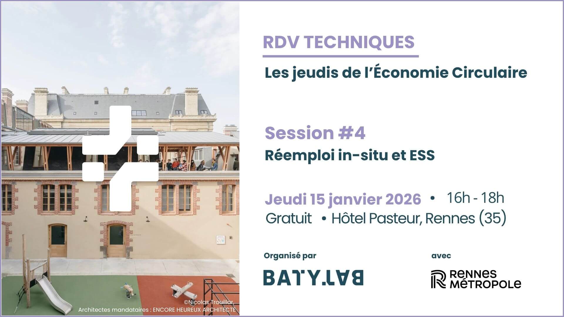 La quatrième session aura lieu à sur Rennes Métropole le 15 janvier 2026 avec pour thématique : réemploi in-situ et ESS.