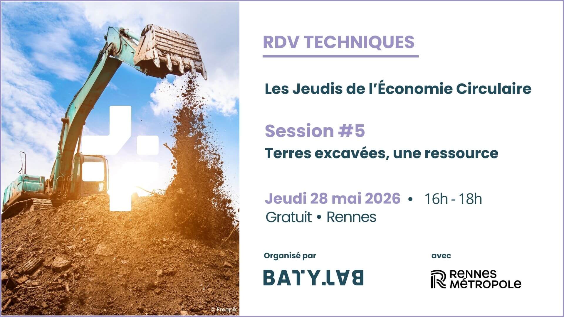 Les « Jeudis de l’Économie Circulaire » entrent dans le cadre d’un parcours apprenant dédié à l’économie circulaire dans le BTP à destination des professionnels du secteur. Ce parcours comprend 5 sessions, organisées dans Rennes Métropole entre mi-2025 et mi-2026.