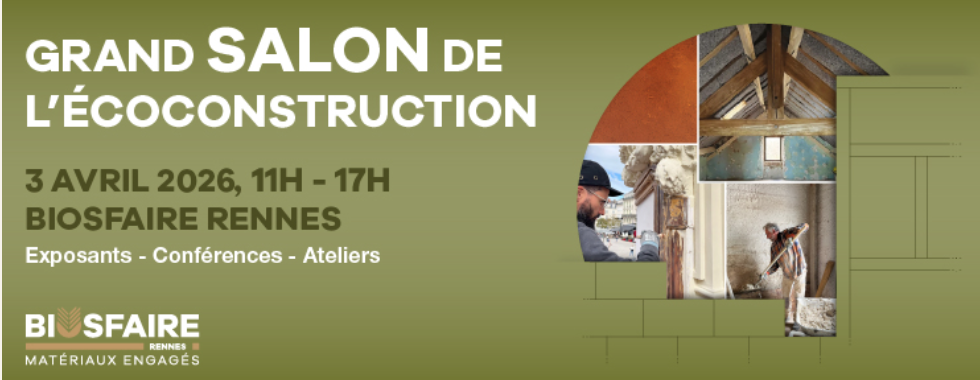 C’est autour de cette thématique que s’articulera la 4e édition de notre Grand SALON de l’écoconstruction à Biosfaire Rennes le 03 avril 2026. Un événement pensé comme un temps de rencontres, de transmission et de pratique, ouvert à toutes celles et ceux qui rénovent – ou souhaitent rénover – des bâtiments anciens.